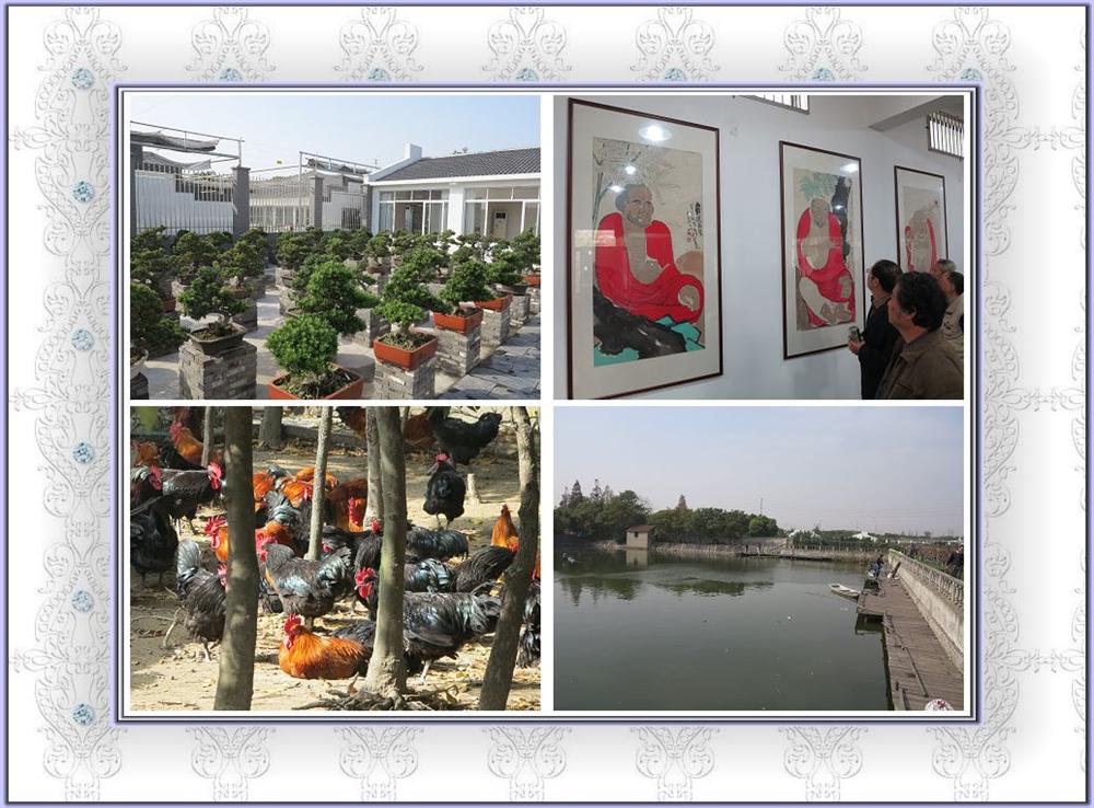 “坤隆园艺”位于南通市区西北大门港闸区天生港镇福利村,占地108百亩,是一家集农业养植、花卉盆景培育、文化字画与古瓷收藏、休闲垂钓、旅游餐饮于一体的多元化绿色生态园。在园主杜总的引领下,兰友们先后参观了以南通藉画家林晓作品为主的“中国开云休闲艺术馆”、以种植培育雀舌罗汉松和大板松为主的盆景园、以富有特色的南通狼山鸡、浙江仙居鸡、山东汶上芦花鸡散养基地,最后兰友们来到了栽有珍稀品种的兰棚进行参观。二排全封闭阳光房,面积虽然不是很大,但场地洁净,设施先进,建有自动喷灌、排风、水帘增湿、地暖增温等系统,现代化程度很高。一盆盆兰花在兰架上疏朗摆放,清翠欲滴。品种有端梅、紫沙星、老朵云、老蜂巧、麦当劳、卢氏蕊蝶、程梅等,都属上档铭品。育兰前辈张逸民老先生还重点介绍了栽培基质,主要以软植料为主:树皮或花生壳35%、植金石35%、草炭15%、仙土10%、木炭5。兰友们听得认真,看得仔细,特别对园主敢于投资引种高档花的财力和魄力、应用现代科学技术种养兰花的高水平表示由衷的钦佩。